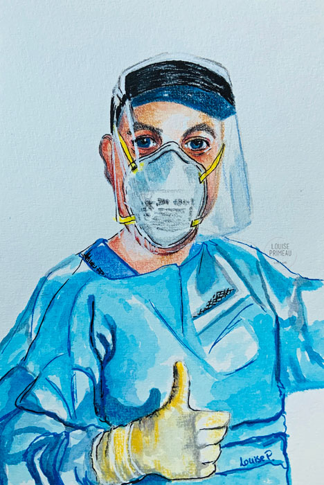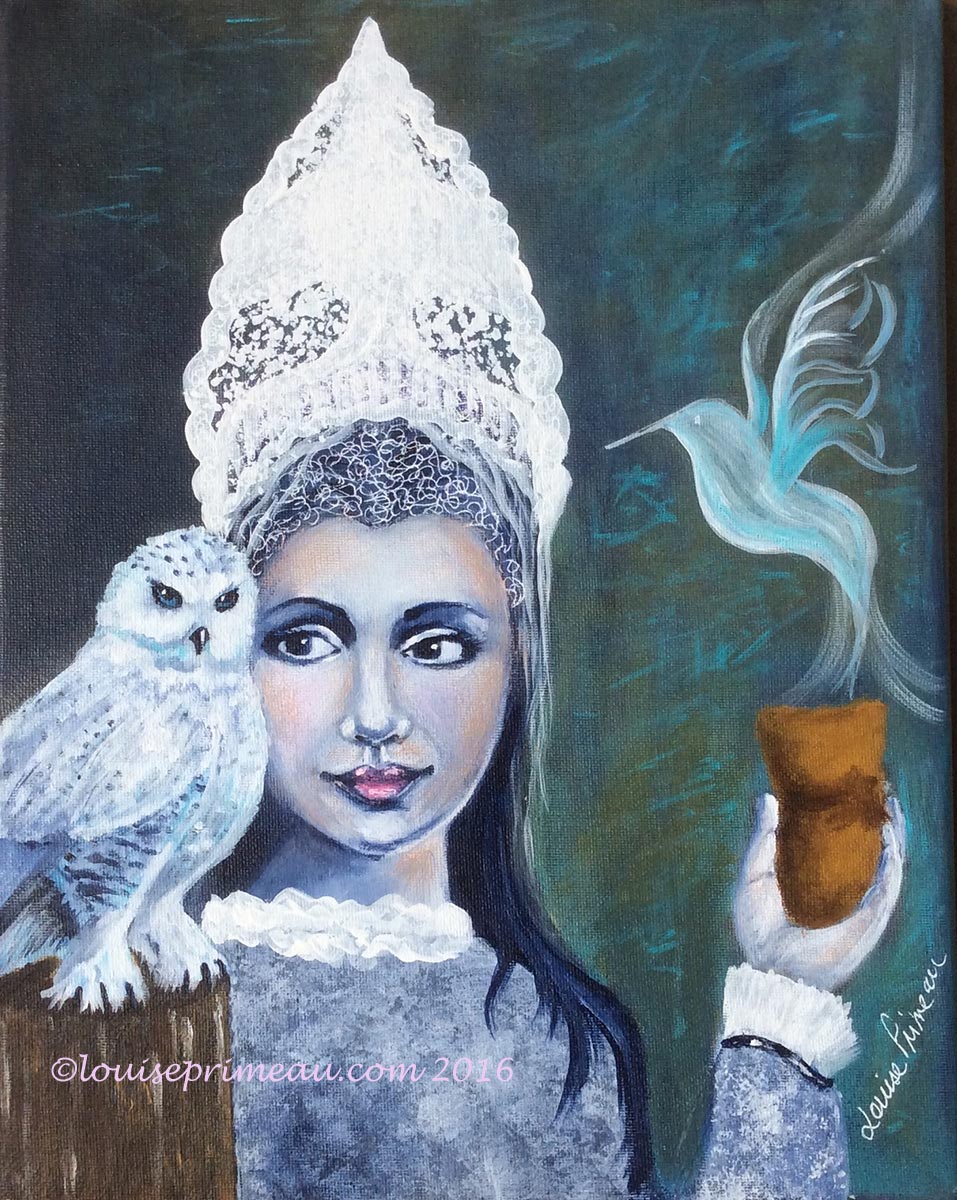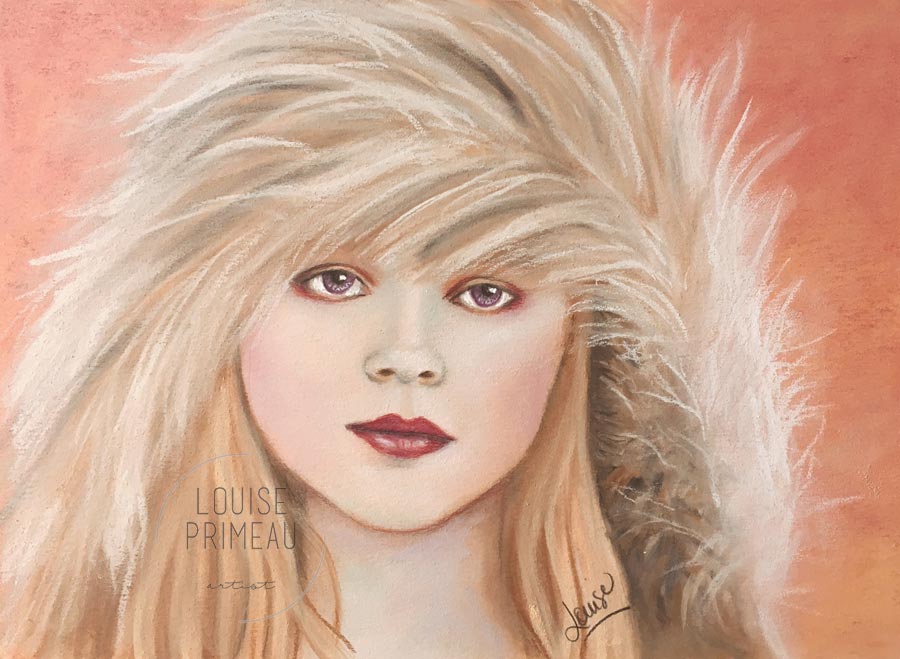 “She’s a little red with a touch of blue” – 11 x 15″ mixed media on Canson 140 lb watercolour paper.
